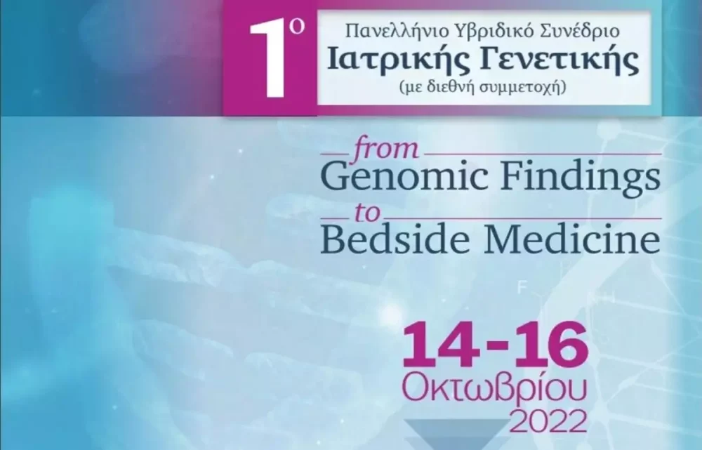 Το 1ο Πανελλήνιο Συνέδριο της Ελληνικής Εταιρείας Ιατρικής Γενετική μετά από την αναγνώριση της ειδικότητας της Ιατρικής Γενετικής, θα λάβει χώρα στις 14-16 Οκτωβρίου 2022 στην Αθήνα όπου θα πραγματοποιηθεί με υβριδική μορφή (διαδικτυακά και με φυσική παρουσία) στο Αμφιθέατρο της Φυσιολογίας “Γ. Κοτζιάς”, στην Ιατρική Σχολή, του Εθνικού Καποδιστριακού Πανεπιστημίου Αθηνών και χαρακτηρίζεται από υψηλό επιστημονικό επίπεδο θεματολογίας και συμμετεχόντων. Η συμμετοχή είναι δωρεάν.