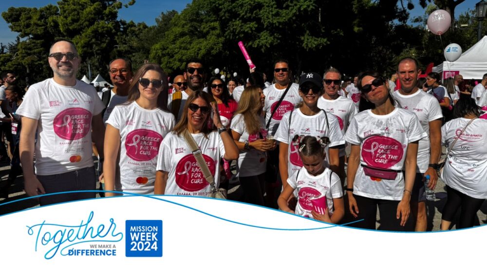 Στην Ελλάδα, το Mission Week ξεκίνησε λίγο νωρίτερα για τους εργαζομένους τηςAmgen Hellas, συγκεκριμένα την Κυριακή 29 Σεπτεμβρίου. Και φέτος, η Amgen Ελλάδος υποστήριξε τη μεγάλη διοργάνωση του Συλλόγου “Άλμα Ζωής”, Race for the Cure, ως «Χορηγός Ημέρας». Παράλληλα, οι εργαζόμενοι της εταιρείας συμμετείχαν στον αγώνα, μεταδίδοντας το μήνυμα της ευαισθητοποίησης και της ενημέρωσης για τον καρκίνο του μαστού.