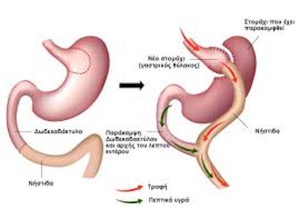 - η «Γαστρική Παράκαμψη» (γαστρικό bypass, Roux-n-Y gastric bypass) και