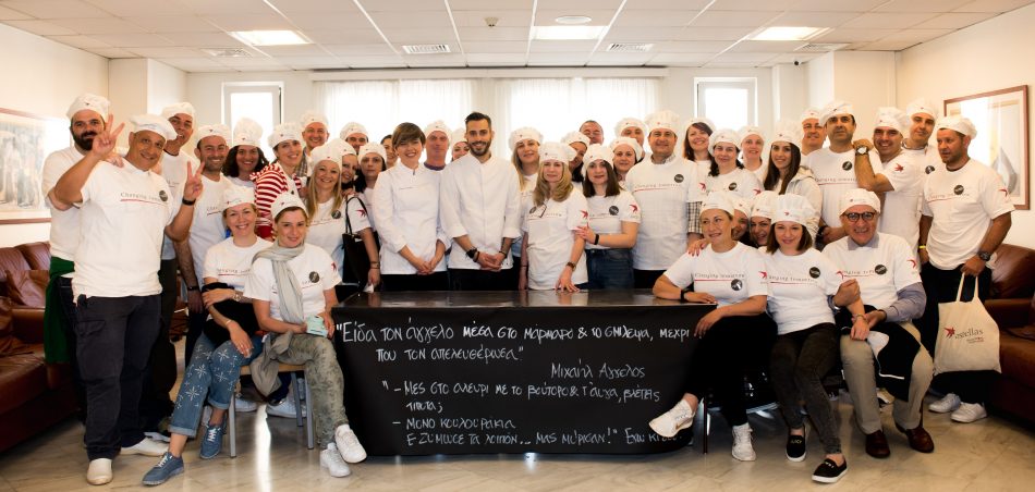 Περισσότεροι από 40 εργαζόμενοι της εταιρείας συμμετείχαν εθελοντικά στην ενέργεια και με αίσθημα φροντίδας βρέθηκαν στο Γηροκομείο Πειραιά, περνώντας δημιουργικό χρόνο με τους 200 φιλοξενούμενους στη συγκεκριμένη δομή. Οι γιαγιάδες και οι παππούδες ξεκίνησαν την ημέρα τους μαζί με τους εθελοντές της Astellas στο «καφενείο» του Γηροκομείου, απολαμβάνοντας όλοι μαζί γευστικό ελληνικό καφέ στη χόβολη. Ακολουθήσε μια ξεχωριστή δράση αγάπης μέσα από ένα μοναδικό μάθημα μαγειρικής με την υπογραφή 2 γνωστών chef, ειδικά σχεδιασμένο για τη γιαγιά και τον παππού. O Γιώργος Τσούλης και η Μάγκυ Ταμπακάκη ανέλαβαν να παροτρύνουν τους συμμετέχοντες να δημιουργήσουν όλοι μαζί κουλουράκια βανίλιας και μπισκότα πορτοκαλιού, σε ένα διαδραστικό Master Class Αγάπης, με πολύ κέφι και χαρούμενη διάθεση. Η ημέρα ολοκληρώθηκε με ένα πλούσιο μεσημεριανό γεύμα που προσέφερε η Astellas, ενώ ως ανάμνηση της ημέρας, οι εργαζόμενοι της εταιρείας δώρισαν στο Γηροκομείο 4 πίνακες ζωγραφικής που δημιούργησαν οι ίδιοι.