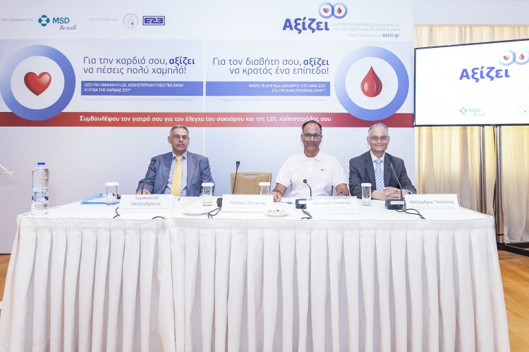 Την επιτυχημένη υλοποίηση της πανελλαδικής Εκστρατείας Ενημέρωσης για τον Διαβήτη και τη Δυσλιπιδαιμία με τίτλο «Αξίζει» ανακοίνωσε η φαρμακευτική εταιρεία MSD, στο πλαίσιο σχετικής Συνέντευξης Τύπου. Η εκστρατεία «Αξίζει» αποτελεί ένα πρόγραμμα της MSD με την αιγίδα της Ελληνικής Διαβητολογικής Εταιρείας και της Ελληνικής Εταιρείας Αθηροσκλήρωσης, με στόχο την ενημέρωση και ευαισθητοποίηση του κοινού σχετικά με τον Διαβήτη και τη Δυσλιπιδαιμία, δύο από τους πιο σημαντικούς παράγοντες κινδύνου για το καρδιομεταβολικό σύνδρομο.