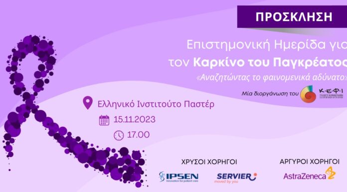 Ο Σύλλογος Καρκινοπαθών, Εθελοντών, Φίλων, Ιατρών «Κ.Ε.Φ.Ι.» Αθηνών διοργανώνει Επιστημονική Ημερίδα με θέμα «ΠΑΓΚΟΣΜΙΑ ΗΜΕΡΑ ΓΙΑ ΤΟΝ ΚΑΡΚΙΝΟ ΤΟΥ ΠΑΓΚΡΕΑΤΟΣ – Αναζητώντας το φαινομενικά...