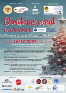Το φιλανθρωπικό σωματείο ΛΑΝΑΣΣΑ, υπέρ παιδιών με καρκίνο (www.lanassa.org) σε συνεργασία με το «ΟΡΑΜΑ ΕΛΠΙΔΑΣ», τα Εκπαιδευτήρια «Η Θεομήτωρ» και το Σύλλογο Ατόμων με σκλήρυνση κατά πλάκας Αττικής, σας προσκαλεί στην Χριστουγεννιάτικη εορτή του που συνδιοργανώνει με το Δήμο Ηλιούπολης, την UNESCO Πειραιώς & Νήσων και την Action Art International, τη Δευτέρα 16 Δεκεμβρίου 2024 στις 17:30 στο Δημοτικό Θέατρο Ηλιούπολης ”Μίκης Θεοδωράκης”