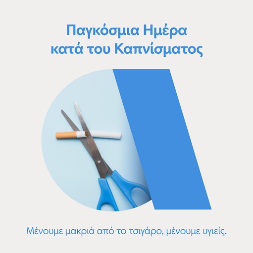 Στις 31 Μαΐου κάθε χρόνο, γιορτάζεται η Παγκόσμια Ημέρα κατά του Καπνίσματος (World No Tobacco Day), μια πρωτοβουλία του Παγκόσμιου Οργανισμού Υγείας που καθιερώθηκε το 1987 για να αυξήσει την ευαισθητοποίηση του κόσμου για τους κινδύνους του καπνού και τις αποτρέψιμες ασθένειες που δημιουργεί.
