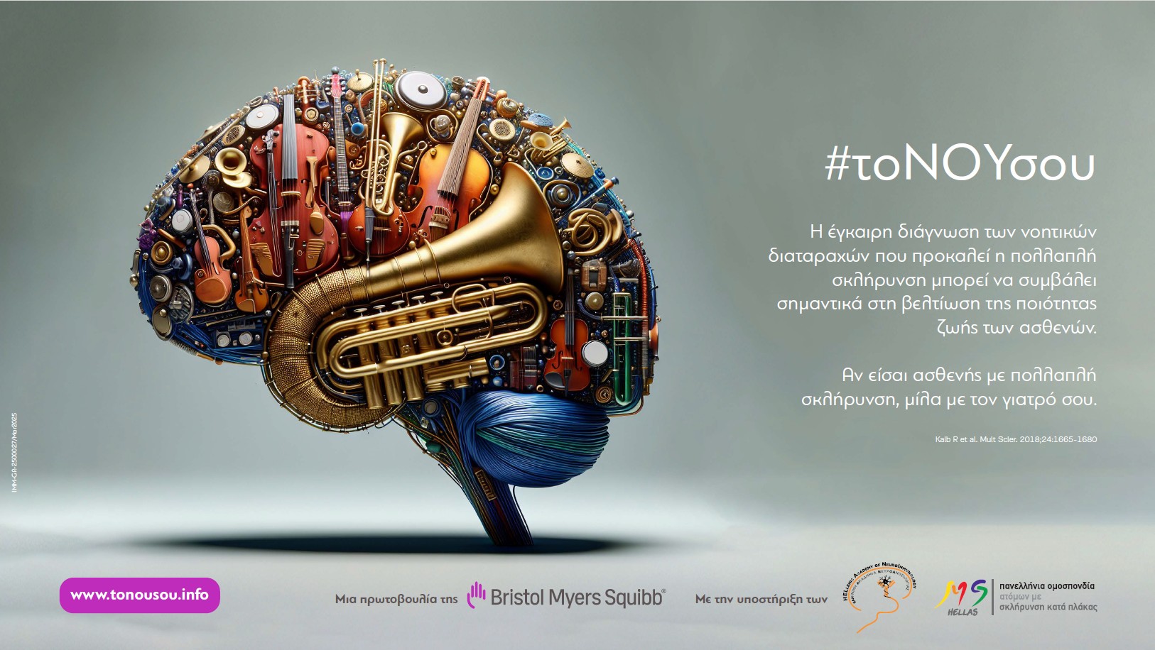 Με αφορμή την επικείμενη Παγκόσμια Ημέρα Πολλαπλής Σκλήρυνσης (30 Μαΐου), η Bristol Myers Squibb, Ελλάδας (BMS) ενεργοποιεί τη νέα εκστρατεία ενημέρωσης ‘#τοΝΟΥσου’, ως μια παρότρυνση προς το ευρύ κοινό, τους ασθενείς με πολλαπλή σκλήρυνση αλλά και τους οικείους τους να ενημερωθούν, να αναγνωρίσουν πιθανά συμπτώματα και να αναζητήσουν, έγκαιρα, τη συμβουλή ενός εξειδικευμένου νευρολόγου, για την ορθή ιατρική αξιολόγηση και παρέμβαση.