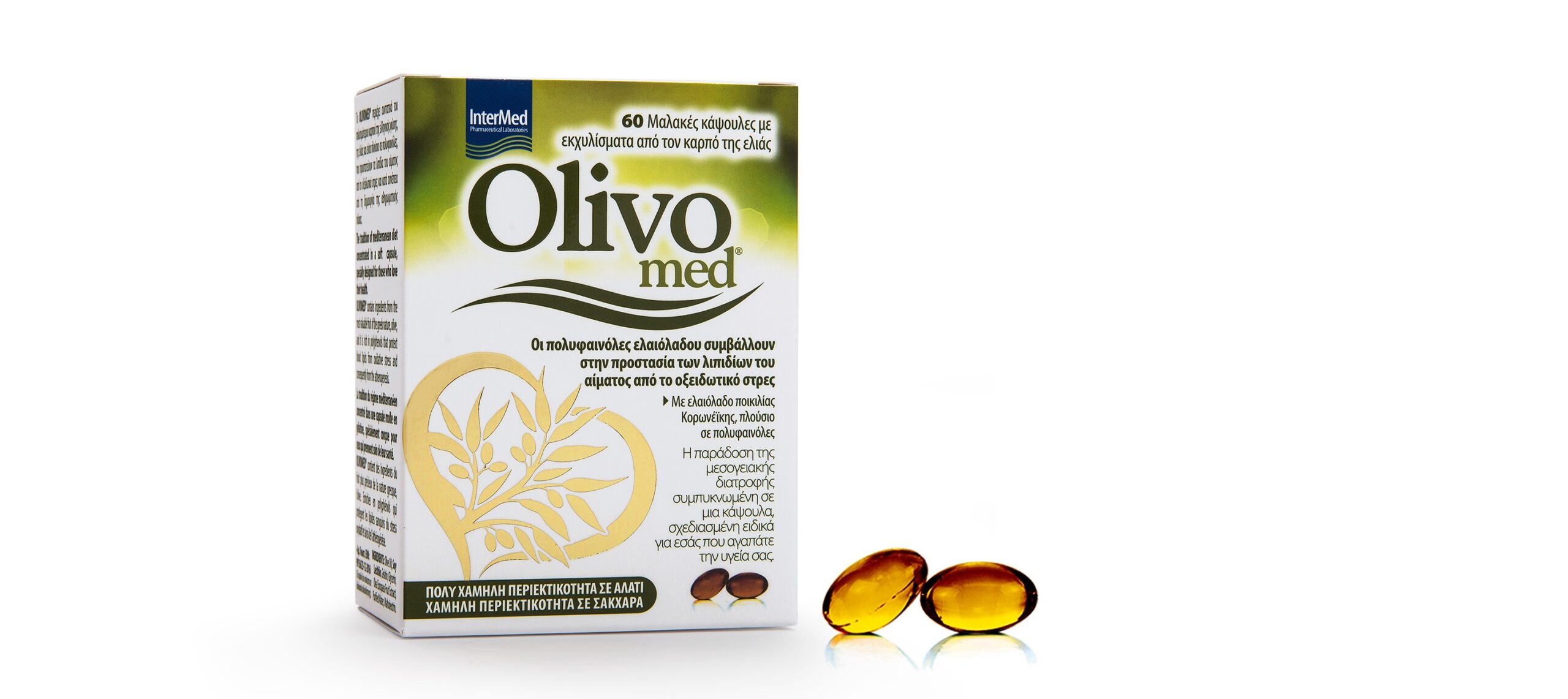 Το συμπλήρωμα διατροφής Olivomed περιέχει εκχύλισμα καρπών ελιάς πλούσιο σε πολυφαινόλες και συμβάλλει, βάσει αποτελεσμάτων κλινικής μελέτης, στη μείωση του δείκτη μάζας σώματος (ΔΜΣ) και του σπλαχνικού λίπους σε υπέρβαρα άτομα. Επίσης, οι περιεχόμενες πολυφαινόλες ελαιολάδου συμβάλλουν στην προστασία των λιπιδίων του αίματος από το οξειδωτικό στρες.