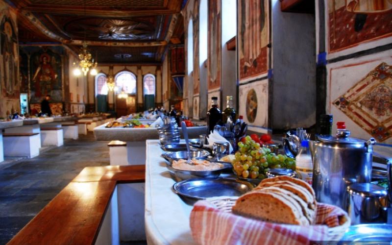 Οι μοναχοί τρώνε όλοι μαζί σαν οικογένεια σε προγραμματισμένα γεύματα. Έτσι πετυχαίνουν τη σταθερότητα στον μεταβολισμό τους, ενώ με την αποφυγή κατανάλωσης διαδοχικών και ακατάστατων γευμάτων ή μεγάλων ποσοτήτων διευκολύνουν την πέψη του οργανισμού τους, κάτι που τους επιτρέπει την πνευματική τους ανασύνταξη και επαναλειτουργία.