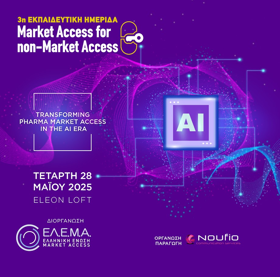 Μετά τη μεγάλη επιτυχία της περσινής διοργάνωσης, η Ελληνική Ένωση Market Access (ΕΛ.Ε.Μ.Α.) διοργανώνει την 3η Εκπαιδευτική Ημερίδα Market Access for nonMarket Access, με τίτλο «Τransforming Pharma Market Access in the AI era» που θα πραγματοποιηθεί στο Eleon Loft, την Τετάρτη 28 Μαΐου 2025.