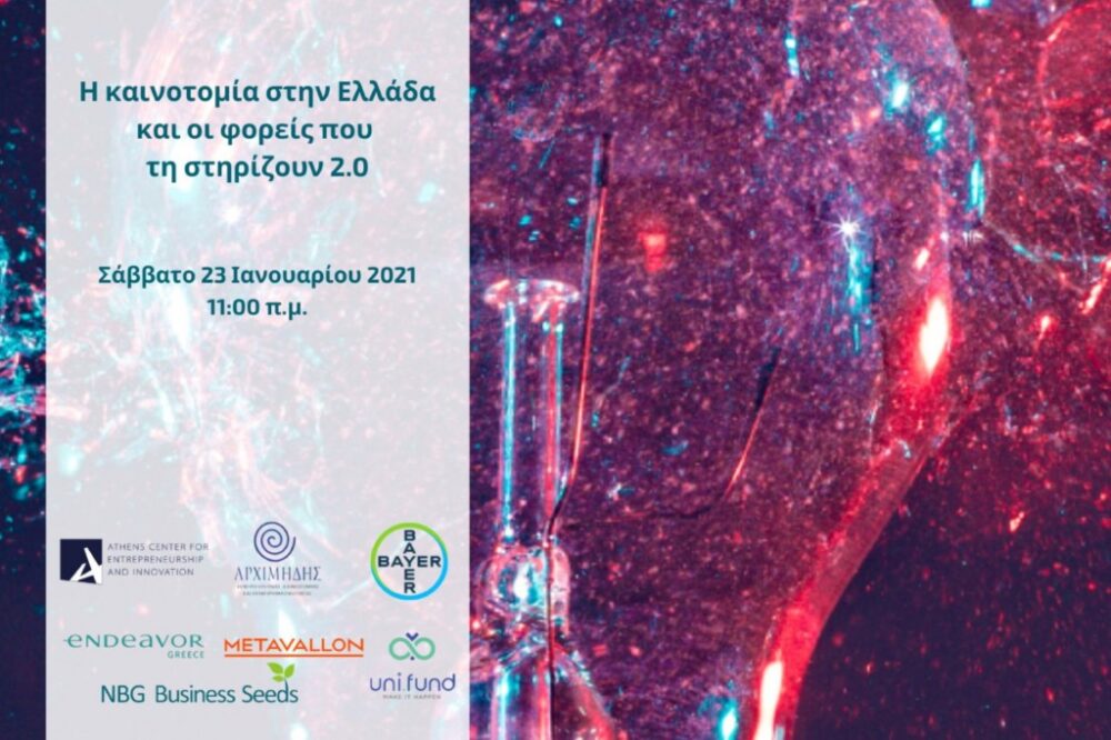 Το Σάββατο 23 Ιανουαρίου 2021 το Κέντρο Επιχειρηματικότητας και Καινοτομίας (ACEin) του ΟΠΑ και το πρόγραμμα NBG Business Seeds της Εθνικής Τράπεζας, το Κέντρο Αρχιμήδης του ΕΚΠΑ, η Bayer, η Endeavor Greece, το Metavallon, το Uni.Fund διοργάνωσαν για δεύτερη συνεχή χρονιά την ημερίδα με τίτλο: «Η Καινοτομία στην Ελλάδα σήμερα και οι φορείς που τη στηρίζουν». Φέτος, η ημερίδα πραγματοποιήθηκε διαδικτυακά και φιλοξένησε τη συντριπτική πλειοψηφία των φορέων, των οργανισμών και των δομών γύρω από το οικοσύστημα της επιχειρηματικότητας και καινοτομίας με στόχο να δώσει μία πολύ καλή εικόνα του πώς λειτουργεί ο κάθε οργανισμός συνεισφέροντας με το δικό του τρόπο στην ενδυνάμωση και ενίσχυση όλων των προσπαθειών που πραγματοποιούνται προς αυτήν την κατεύθυνση.