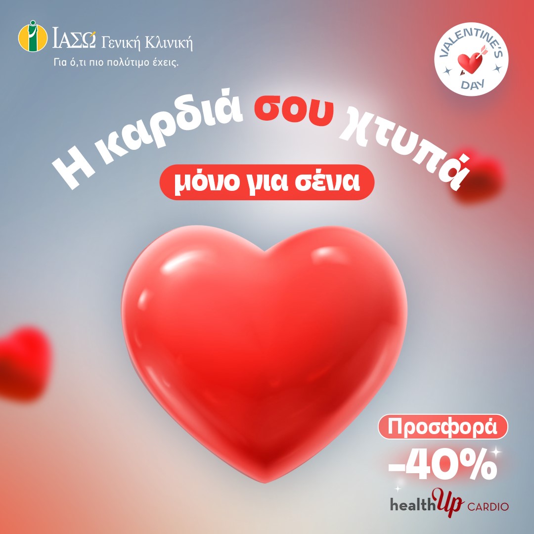 H Γενική Κλινική του ΙΑΣΩ με αφορμή την Ημέρα του Αγίου Βαλεντίνου και με μήνυμα «Η καρδιά σου χτυπά μόνο για σένα», προσφέρει τα πακέτα healthUp CARDIO, με έκπτωση 40%.