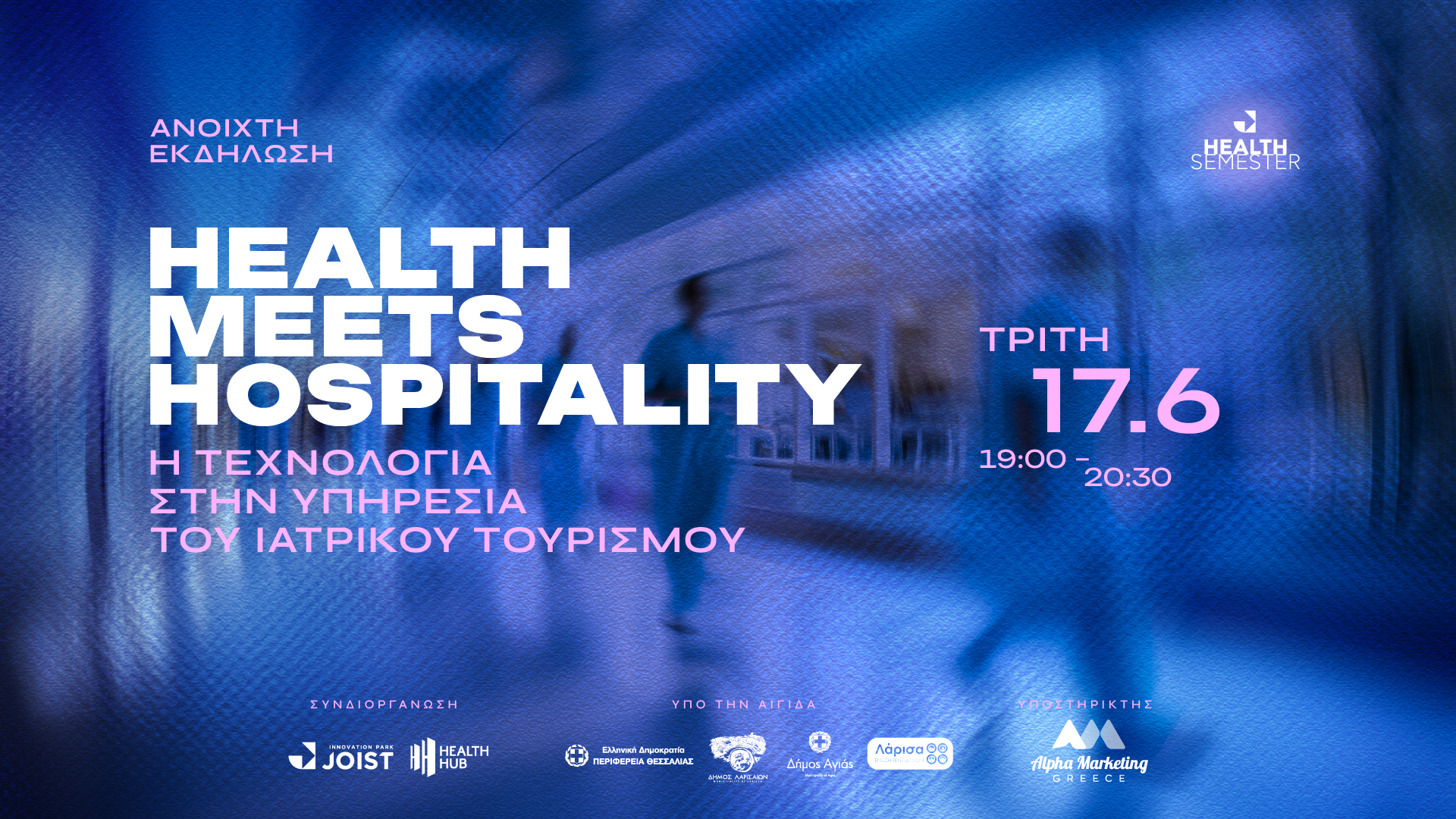 Με φόντο τις ταχύτατα αναπτυσσόμενες προοπτικές του ιατρικού τουρισμού στην Ελλάδα και ειδικότερα στη Θεσσαλία, το Πάρκο Καινοτομίας JOIST και ο Ευρωπαϊκός Κόμβος Ψηφιακής Καινοτομίας Health Hub συνδιοργανώνουν την εκδήλωση Health Meets Hospitality: Η Τεχνολογία στην Υπηρεσία του Ιατρικού Τουρισμού την Τρίτη 17 Ιουνίου, στις 19:00, στο JOIST Innovation Park, στη Λάρισα.