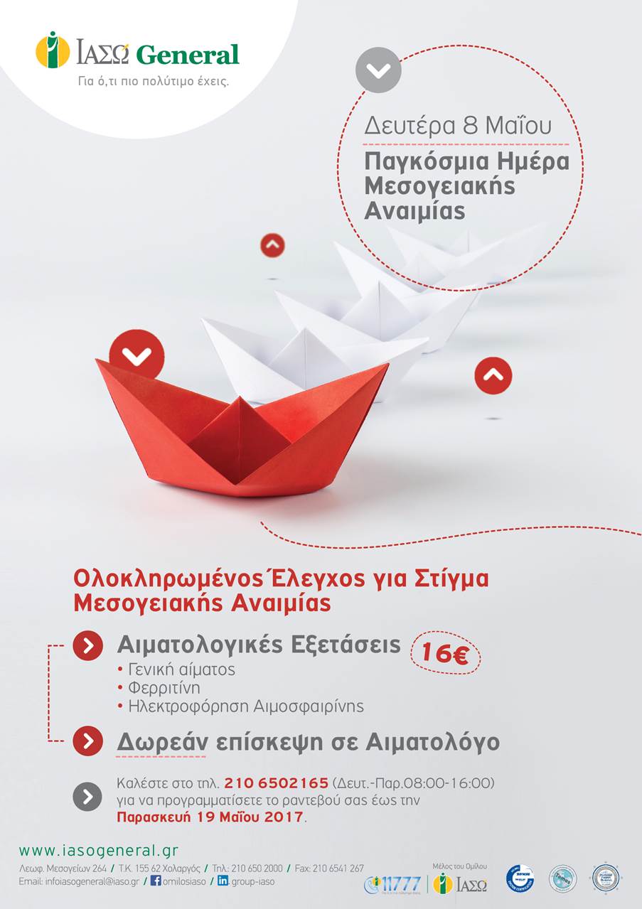 Το ΙΑΣΩ General, με αφορμή την Παγκόσμια Ημέρα Μεσογειακής Αναιμίας (8 Μαΐου) και στο πλαίσιο μιας σειράς δράσεων για την προβολή της αξίας της πρόληψης, προσφέρει έναν ολοκληρωμένο έλεγχο για τη διάγνωση του στίγματος ή της ετερόζυγης β’ μεσογειακής αναιμίας.