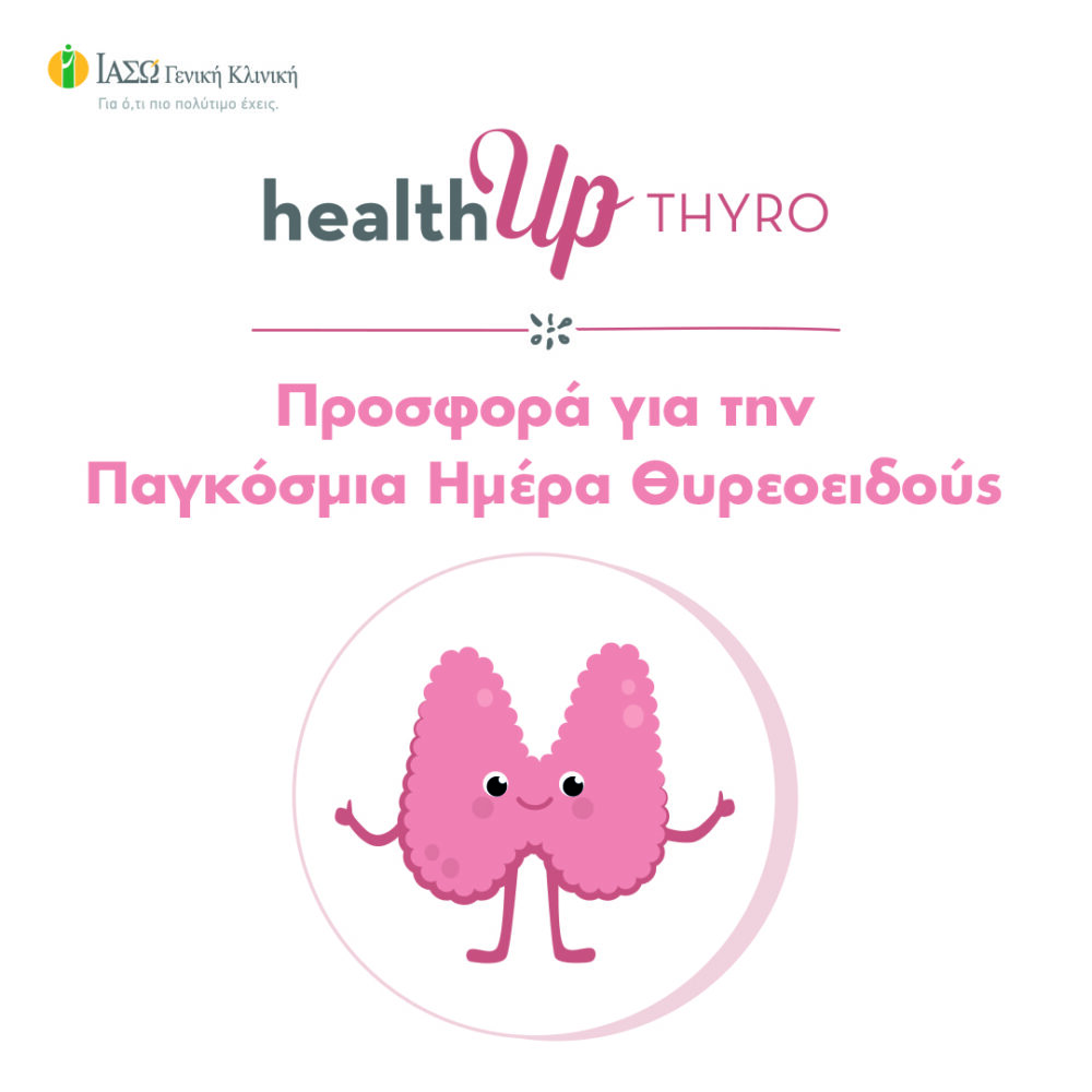 Επισκεφθείτε το νέο τμήμα Check-Up του ΙΑΣΩ Γενική Κλινική και ζητήστε το πακέτο healthUp THYRO σε ειδική προνομιακή τιμή, μόνο 39 €, κάνοντας δωρεάν το υπερηχογράφημα θυρεοειδούς και την εξέταση από Ενδοκρινολόγο. Η προσφορά ισχύει για τους 30 πρώτους που θα καλέσουν μέχρι τις 31/05/2021 για να κλείσουν το ραντεβού τους.