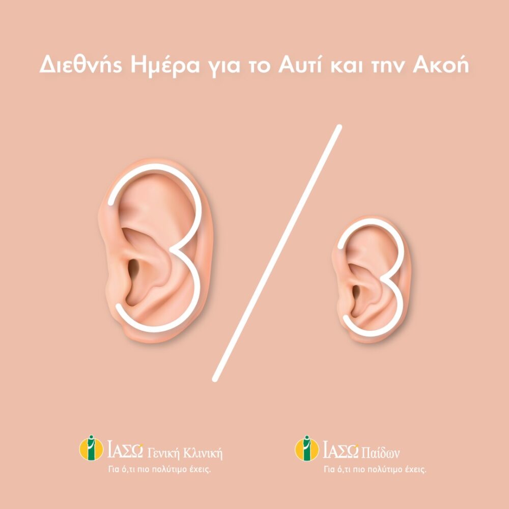 Η Διεθνής Ημέρα για το Αυτί και την Ακοή (3 Μαρτίου) είναι μία ευκαιρία να ενημερωθούν οι γονείς παιδιών και οι ασθενείς που αντιμετωπίζουν προβλήματα ακοής για τις αιτίες που προκαλούν βαρηκοΐα, καθώς επίσης και για  τους διάφορους  τρόπους αντιμετώπισης της. Στο πλαίσιο αυτό, η ΩΡΛ Κλινική του ΙΑΣΩ Γενική Κλινική, το Παιδοακοολογικό Τμήμα και το Τμήμα ΩΡΛ του ΙΑΣΩ Παίδων προσφέρουν δωρεάν ελέγχους ακοής και συγκεκριμένα: