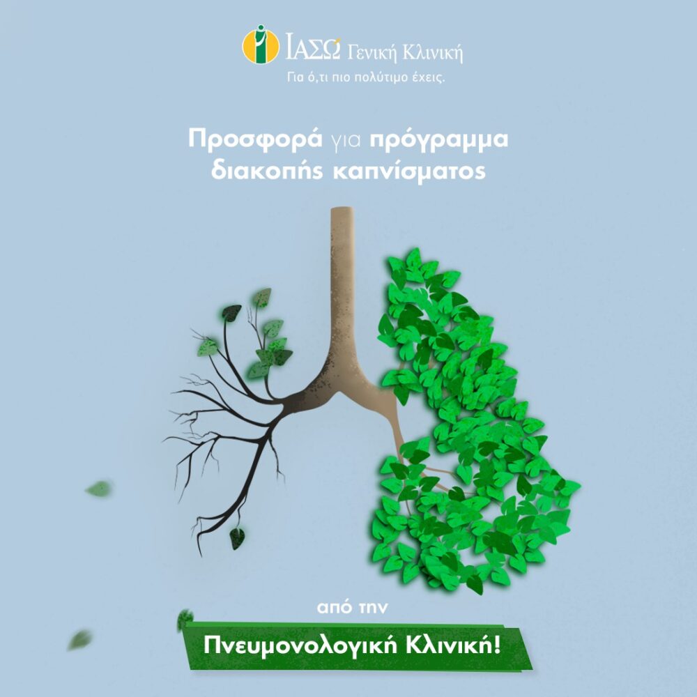 Η Πνευμονολογική Κλινική του ΙΑΣΩ Γενική Κλινική διαθέτει άρτια εξοπλισμένο Ιατρείο Διακοπής Καπνίσματος, το οποίο στελεχώνεται από έμπειρους και εξειδικευμένους Ιατρούς – Πνευμονολόγους, οι οποίοι τόσο μέσω συμβουλευτικής καθοδήγησης όσο και μέσω φαρμακευτικής αγωγής (όταν κρίνεται απαραίτητο), μπορούν να βοηθήσουν ουσιαστικά στην οριστική διακοπή της βλαβερής αυτής συνήθειας.