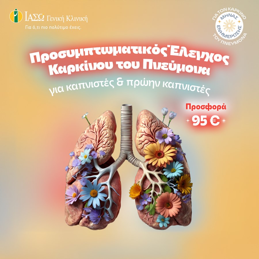 H Γενική Κλινική του ΙΑΣΩ με αφορμή τον Νοέμβριο, Μήνα Ενημέρωσης & Ευαισθητοποίησης για τον Καρκίνο του Πνεύμονα, προσφέρει Προσυμπτωματικό Έλεγχο Καρκίνου του Πνεύμονα για καπνιστές ή πρώην καπνιστές, στην προνομιακή τιμή των 95€.