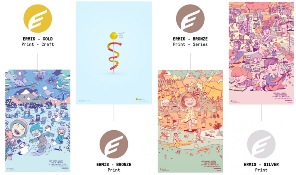 • Silver βραβείο στην κατηγορία Καταχώριση-Σειρά Έργων, Παιδικά Check Up (τριλογία) όπου σε αυτή την κατηγορία διακρίνονται σειρές έργων με συνοχή και κοινό concept. Η κατηγορία Καταχώριση-Print Ad επιβραβεύει print διαφημίσεις στις οποίες υπάρχει μία δυνατή φρέσκια ιδέα, σωστά εκτελεσμένη, άμεσα και εύκολα κατανοητή και με το σωστό tone of voice για το κοινό.