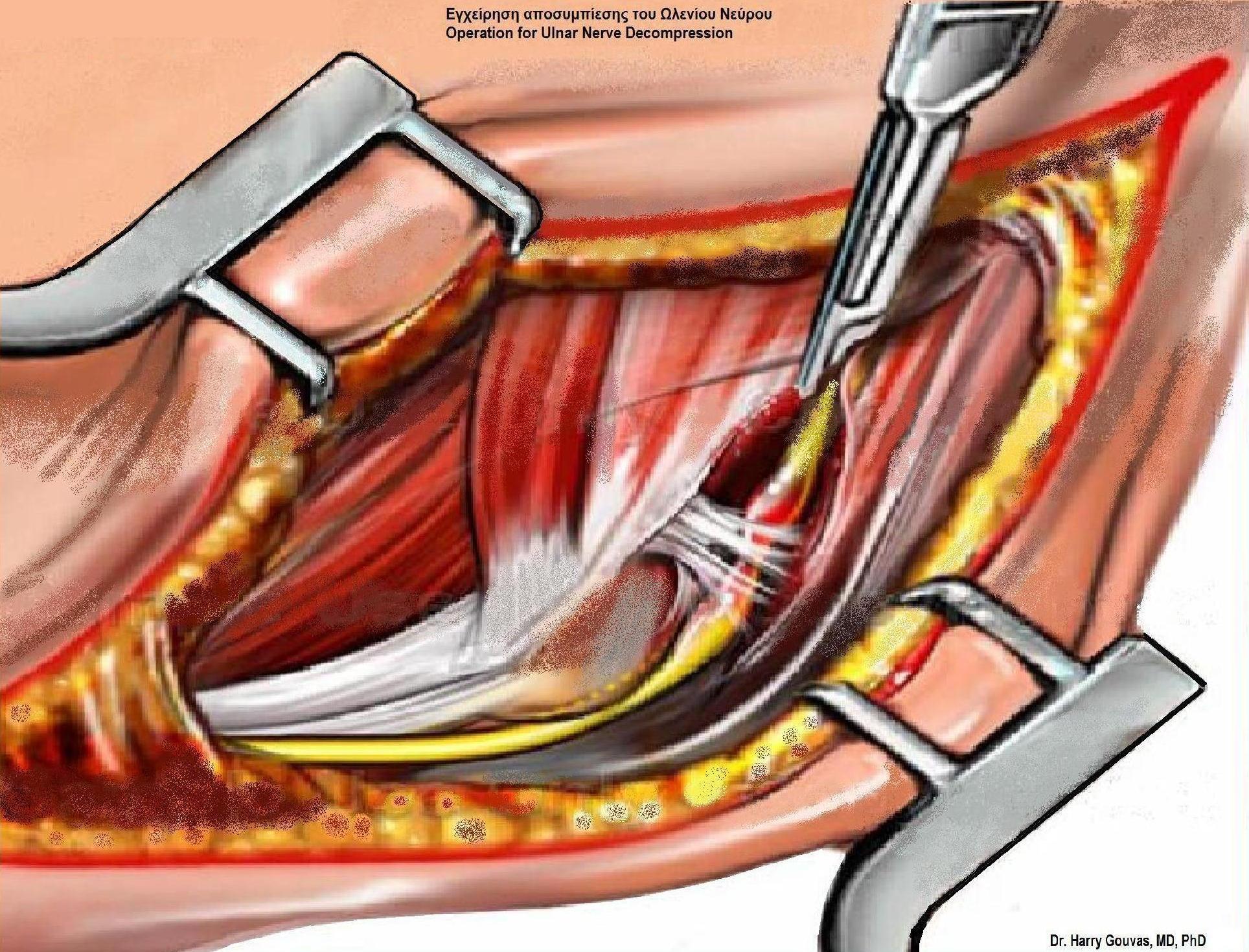 Συνήθως το νεύρο κόβεται στη μέση του βραχίονα ή και στο επίπεδο του αγκώνα, οπότε παραλύουν ο καρπός και τα δάκτυλα. Για την αποκατάσταση του, κατά τη διάρκεια της χειρουργικής επέμβασης,    λαμβάνονται τένοντες από την κάτω(παλαμιαία) πλευρά του πήχυ (που τα έχει ο οργανισμός μας τρόπον τινά εις διπλούν). Στην  συνέχεια μεταμοσχεύονται στη ραχιαία πλευρά του πήχυ και του καρπού για να υποκαταστήσουν την κίνηση των νεκρών μυών ώστε να σηκώνονται(εκτείνονται) ο καρπός, τα δάκτυλα και ο αντίχειρας. Η επέμβαση διαρκεί 1,5 -2 ώρες και  ο ασθενής παραμένει στο νοσοκομείο μία  ημέρα.
