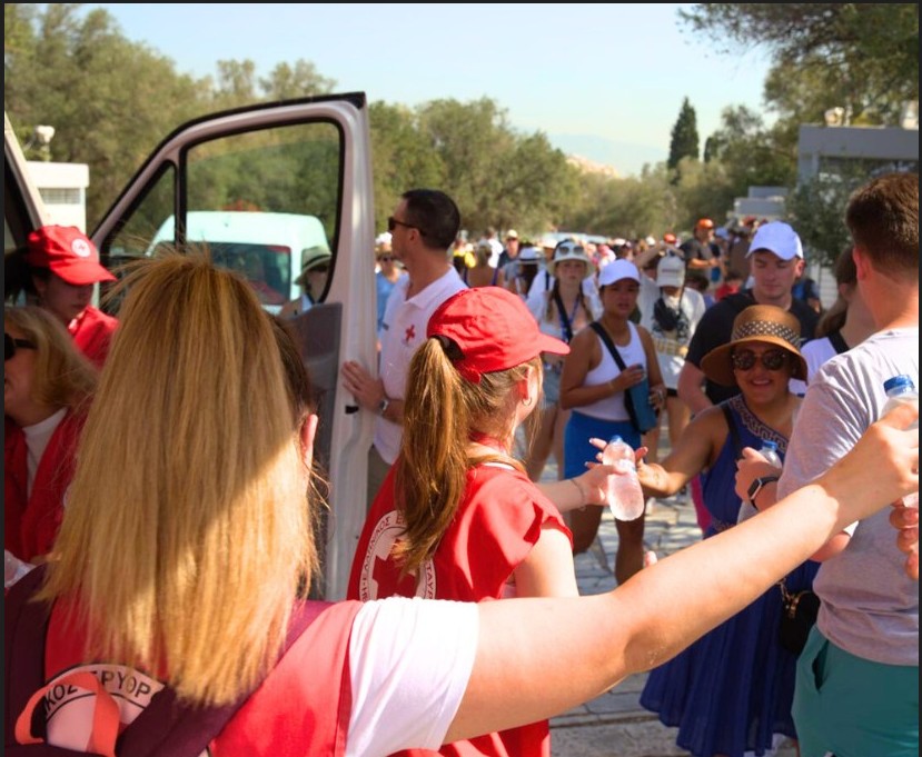 Ο Ελληνικός Ερυθρός Σταυρός διένειμε περισσότερα από 50.000 φιαλίδια 500ml εμφιαλωμένου δροσερού νερού δωρεά στους επισκέπτες της Ακρόπολης