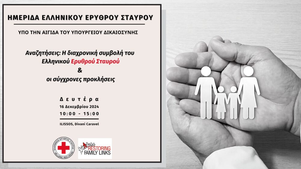 Ο Ελληνικός Ερυθρός Σταυρός διοργανώνει Ημερίδα με θέμα: «Αναζητήσεις: Η διαχρονική συμβολή του Ελληνικού Ερυθρού Σταυρού & οι σύγχρονές προκλήσεις»