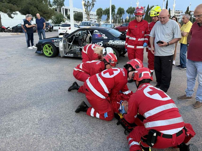 Στη μεγάλη άσκηση στο ΟΑΚΑ, συμμετείχαν 18 εθελοντές Σαμαρείτες -Διασώστες του Τμήματος Αθήνας του Ε.Ε.Σ. με τον απαραίτητο διασωστικό εξοπλισμό (κοπτικά μηχανήματα, διασωστικά σχοινιά κ.α.), καθώς και διασωστικά οχήματα του Ε.Ε.Σ. Το σενάριο της άσκησης εστίασε στον ασφαλή απεγκλωβισμό οδηγού από αγωνιστικό όχημα και στην διακομιδή σε ασφαλές σημείο για παροχή ιατροφαρμακευτικής φροντίδας. Οι παρατηρητές της FIA δήλωσαν εντυπωσιασμένοι από την εξαιρετική οργάνωση και ανταπόκριση των εθελοντών του Ε.Ε.Σ στις ποικίλες ασκήσεις διάσωσης που κλήθηκαν να φέρουν εις πέρας κατά τη διάρκεια της θεωρητικής και πρακτικής εξάσκησής τους.