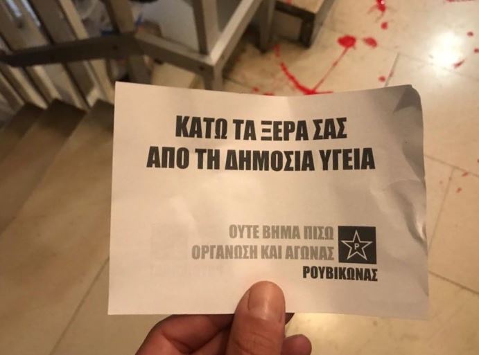 Καταδικάστηκε από τον Ιατρικό Σύλλογο Αθηνών η επίθεση του Ρουβίκωνα στο γραφείο του υπουργού υγείας κου Κικίλια.