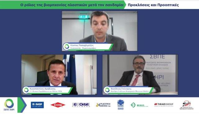 Στην ανάγκη ύπαρξης μιας ισχυρής βιομηχανίας πλαστικών στην Ελλάδα συμφώνησαν οι συμμετέχοντες στην ανοιχτή συζήτηση με θέμα: «Ο ρόλος της βιομηχανίας πλαστικών μετά την πανδημία: Οι Προκλήσεις και οι Προοπτικές της». Η συζήτηση πραγματοποιήθηκε μέσω τηλεδιάσκεψης στο πλαίσιο της Γενικής Συνέλευσης του Συνδέσμου Βιομηχανιών Πλαστικών Ελλάδος, την Τετάρτη 24 Ιουνίου και συμμετείχαν: ο Πρόεδρος του Συνδέσμου Βιομηχανιών Πλαστικών Ελλάδος, Βασίλειος Γούναρης, ο Υπουργός Ανάπτυξης και Επενδύσεων, Άδωνις – Σπυρίδων Γεωργιάδης, ο Γενικός Γραμματέας Φυσικού Περιβάλλοντος και Υδάτων του Υπουργείου Περιβάλλοντος και Ενέργειας, Κωνσταντίνος Αραβώσης, ο Τομεάρχης Περιβάλλοντος και Ενέργειας του ΣΥΡΙΖΑ, Σωκράτης Φάμελλος, ο Διευθύνων Σύμβουλος της εταιρείας «Πλαστικά Θράκης», Κωνσταντίνος Χαλιορής ενώ από την Ευρώπη έλαβαν μέρος ο Managing Director, της EuPC (European Plastics Converters), Αλεξάντερ Ντανζίς, ο Managing Director του «Resilux Group», Peter de Cuijper και ο Executive Managing Director, της «Poly Recycling AG», Casper van den Dungen. Την ανοικτή συζήτηση συντόνισε ο δημοσιογράφος Κωνσταντίνος Παπαχλιμίτζος.