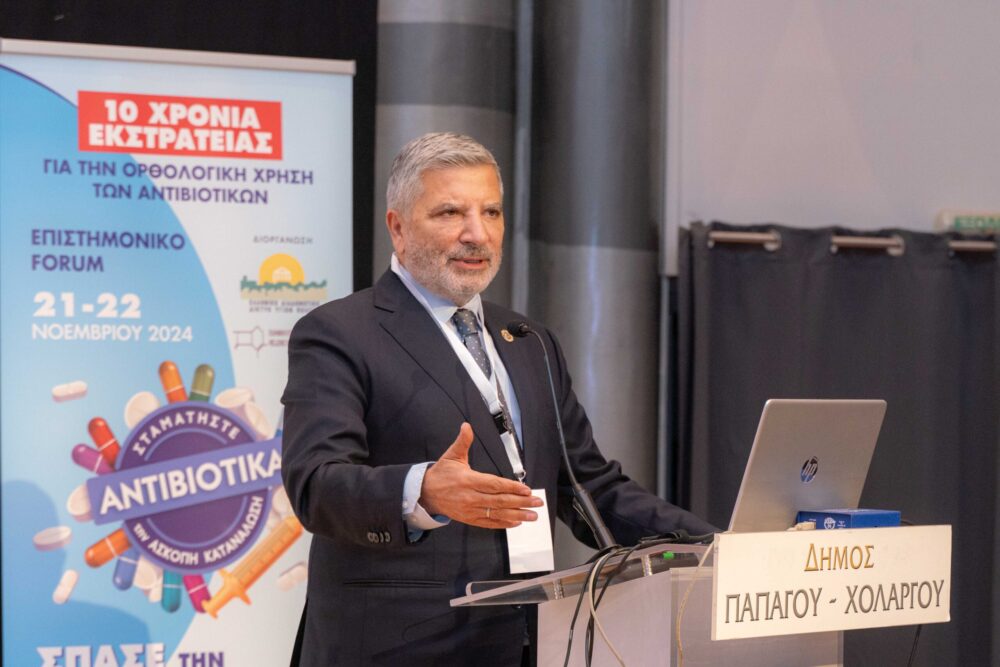 Σε συστράτευση, για «να σπάσει η Αλυσίδα της Μικροβιακής Αντοχής» στην κοινότητα και τα νοσοκομεία, κάλεσαν την Πολιτεία, την Υγειονομική Κοινότητα και τους Πολίτες, οι διακεκριμένοι επιστήμονες που συμμετείχαν στο Επιστημονικό Forum, που διοργάνωσε με αφορμή τη συμπλήρωση 10 χρόνων της «Πανελλήνιας Εκστρατείας Ενημέρωσης για την Ορθή Χρήση των Αντιβιοτικών και την Αξία των Εμβολίων», το Ελληνικό Διαδημοτικό Δίκτυο Υγιών Πόλεων του ΠΟΥ και η Ελληνική Εταιρεία Χημειοθεραπείας, με την υποστήριξη του Ιατρικού Συλλόγου Αθηνών, στην αίθουσα «Μίκης Θεοδωράκης» του Δήμου Παπάγου-Χολαργού.(21-22 Νοεμβρίου 2024).Η σημαντική αυτή εκδήλωση έλαβε χώρα στο πλαίσιο της Παγκόσμιας Εβδομάδας Ευαισθητοποίησης για τα Αντιβιοτικά και τη Μικροβιακή Αντοχή του Π.Ο.Υ. (18-24 Νοεμβρίου).