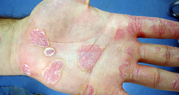 Η ψωρίαση είναι μία συχνή, μη μεταδοτική, αυτοάνοση νόσος που προσβάλλει περισσότερους από 125 εκατομμύρια ανθρώπους παγκοσμίως. Η ψωρίαση κατά πλάκας είναι η συχνότερη μορφή της νόσου και  εμφανίζεται ως επηρμένες, ερυθηματώδεις πλάκες που καλύπτονται από αργυρόχροα λέπια.