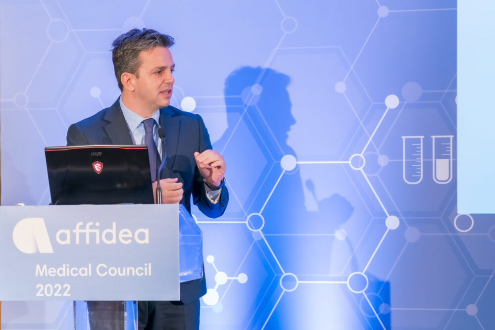 Στην έναρξη των εργασιών του Συνεδρίου, ο Διευθύνων Σύμβουλος της Affidea Ελλάδος  κ. Θεόδωρος Καρούτζος επεσήμανε: «Η κύρια επένδυση του Ομίλου μας είναι το ανθρώπινο δυναμικό μας, οι γιατροί μας. Για να κάνουμε την υγεία πραγματικότητα, χρειαζόμαστε ειδικευμένους γιατρούς που παρέχουν ποιοτική ανθρωποκεντρική φροντίδα και διαδραματίζουν σημαντικό ρόλο στην εκπαίδευση των ασθενών σχετικά με το πώς να φροντίζουν την υγεία τους, να συντονίζουν τη φροντίδα τους και να υποστηρίζουν τις ανάγκες τους. Ο γιατρός παρέχει ουσιαστική προστιθέμενη αξία και για εμάς αποτελεί μέρος των αποφάσεων σε όλο το φάσμα της δραστηριότητάς μας. Πρωταρχικός του ρόλος είναι η διάγνωση και η θεραπεία, αλλά ταυτόχρονα θα πρέπει να ανακουφίζει, να συμβουλεύει, να συμπορεύεται με τον εξεταζόμενο».