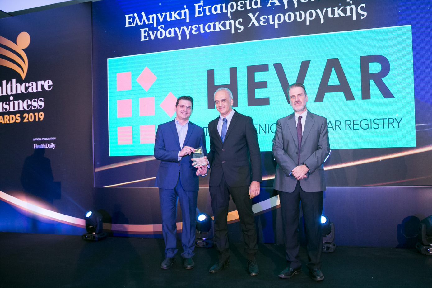 Η Ελληνική Εταιρεία Αγγειακής και Ενδαγγειακής Χειρουργικής (ΕΕΑΕΧ)   έλαβε το χρυσό  βραβείο για τη δημιουργία του Ελληνικού Μητρώου Καταγραφής Αγγειακών Παθήσεων  στα Healthcare Business Awards.  Η Εταιρεία  συμμετείχε  στην κατηγορία “E-health: Ψηφιακές εφαρμογές υποστήριξης του επαγγελματία Υγείας”. Το βραβείο παρέλαβαν οι κ.κ. Ανδρέας Λαζαρης και Κωνσταντινος Μουλακακης.