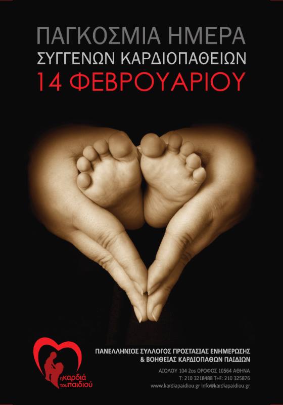 Η Κυριακή 14 Φεβρουαρίου, εκτός από γιορτή των ερωτευμένων, έχει καθιερωθεί παγκοσμίως και ως ημέρα ενημέρωσης και ευαισθητοποίησης, αναφορικά με τις Συγγενείς Καρδιοπάθειες.