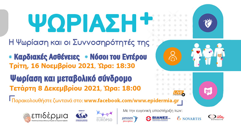 Στο άκουσμα της λέξης «Ψωρίαση», οι περισσότεροι από εμάς σκεφτόμαστε τις δερματικές βλάβες που χαρακτηρίζουν την κλινική εικόνα της νόσου. Πόσοι όμως γνωρίζουμε ότι οι ορατές αυτές αλλοιώσεις αποτελούν μόνο ένα μέρος της συνολικής της επίπτωσης στην υγεία των ασθενών; Συγκεκριμένα, πολλοί ασθενείς εμφανίζουν σοβαρές συννοσηρότητες, δηλαδή παθολογικές εκδηλώσεις από άλλα συστήματα του οργανισμού, οι οποίες συνυπάρχουν με τις δερματικές βλάβες1. Επιδιώκοντας να προσφέρει στους ασθενείς και το ευρύ κοινό σφαιρική πληροφόρηση για την Ψωριασική Νόσο, ο Πανελλήνιος Σύλλογος «Επιδέρμια» υλοποιεί αυτό το διάστημα την καμπάνια ενημέρωσης «Ψωρίαση+». Η καμπάνια περιλαμβάνει τη διενέργεια δύο διαδικτυακών ενημερωτικών εκδηλώσεων (webinars), αναρτήσεις στα social media, καθώς και τη δημιουργία και διανομή σχετικού ενημερωτικού εντύπου.