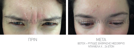 Με το botox προλαμβάνονται και αντιμετωπίζονται οι ρυτίδες έκφρασης: μετώπου, μεσόφρυου, ματιών και λαιμού.